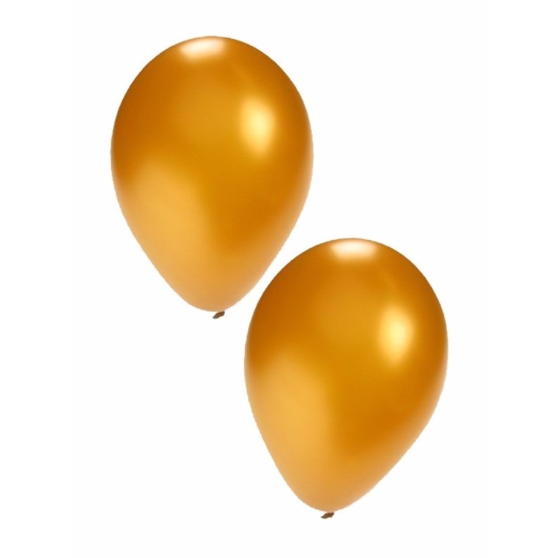 Bellatio Decorations party ballonnen in de kleur goud. Set van 50x stuks. De ballonnen zijn opgeblazen ca. 27 cm groot en zijn geschikt om te vullen met lucht of helium. Geef je kamer een gezellige en feestelijke sfeer met deze mooie ballonnen, ideale versiering voor een verjaardag of een feestje. Feestartikelen en versieringen in de kleur goud.