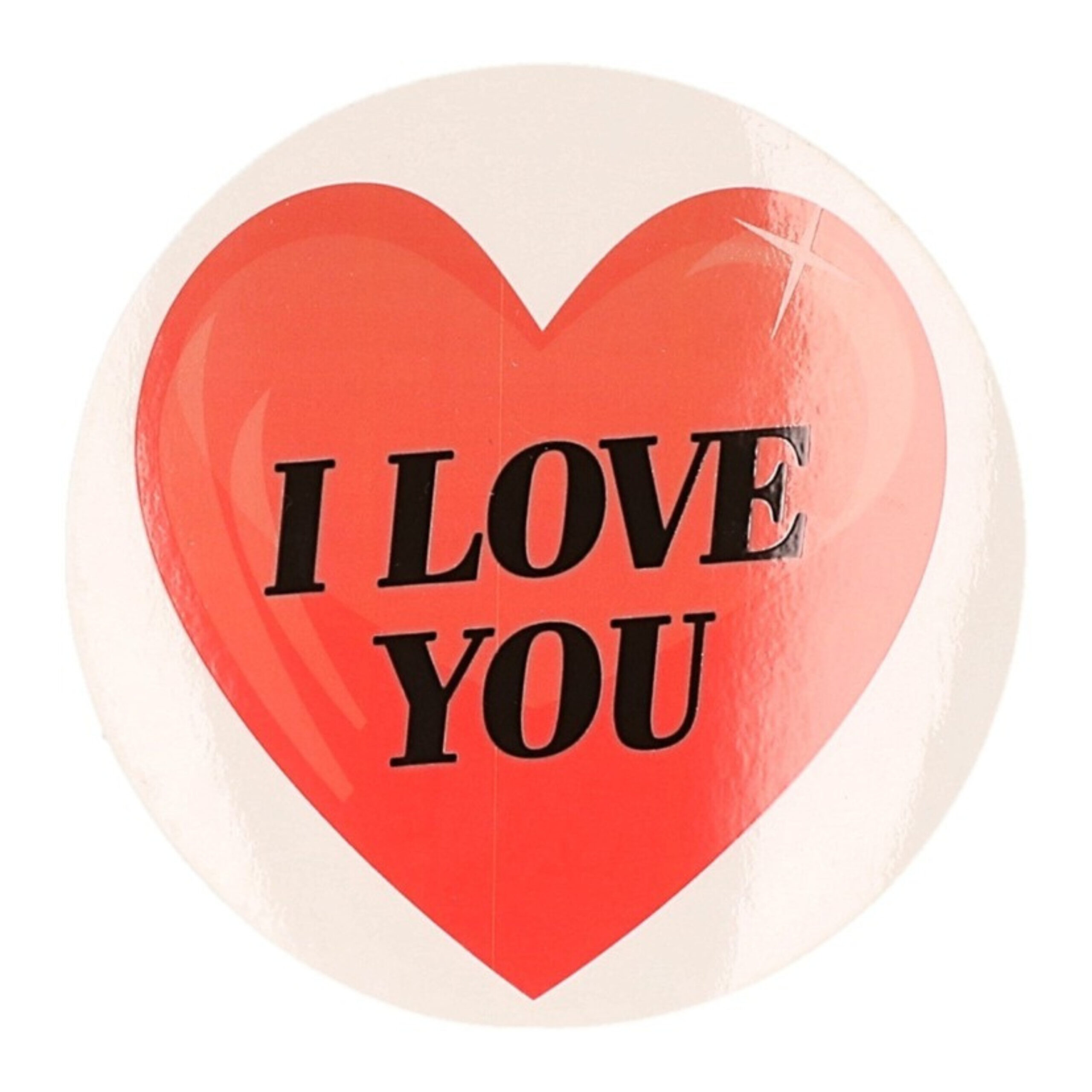 Cadeausticker, 1x. Geef je cadeau een persoonlijke en liefdevolle touch met deze ronde cadeausticker van 9 cm. De transparante sticker is bedrukt met een hart en de tekst ?I Love You?, waardoor elk geschenk direct een romantische uitstraling krijgt. Perfect voor Valentijnsdag, een verjaardag of zomaar om iemand te verrassen.