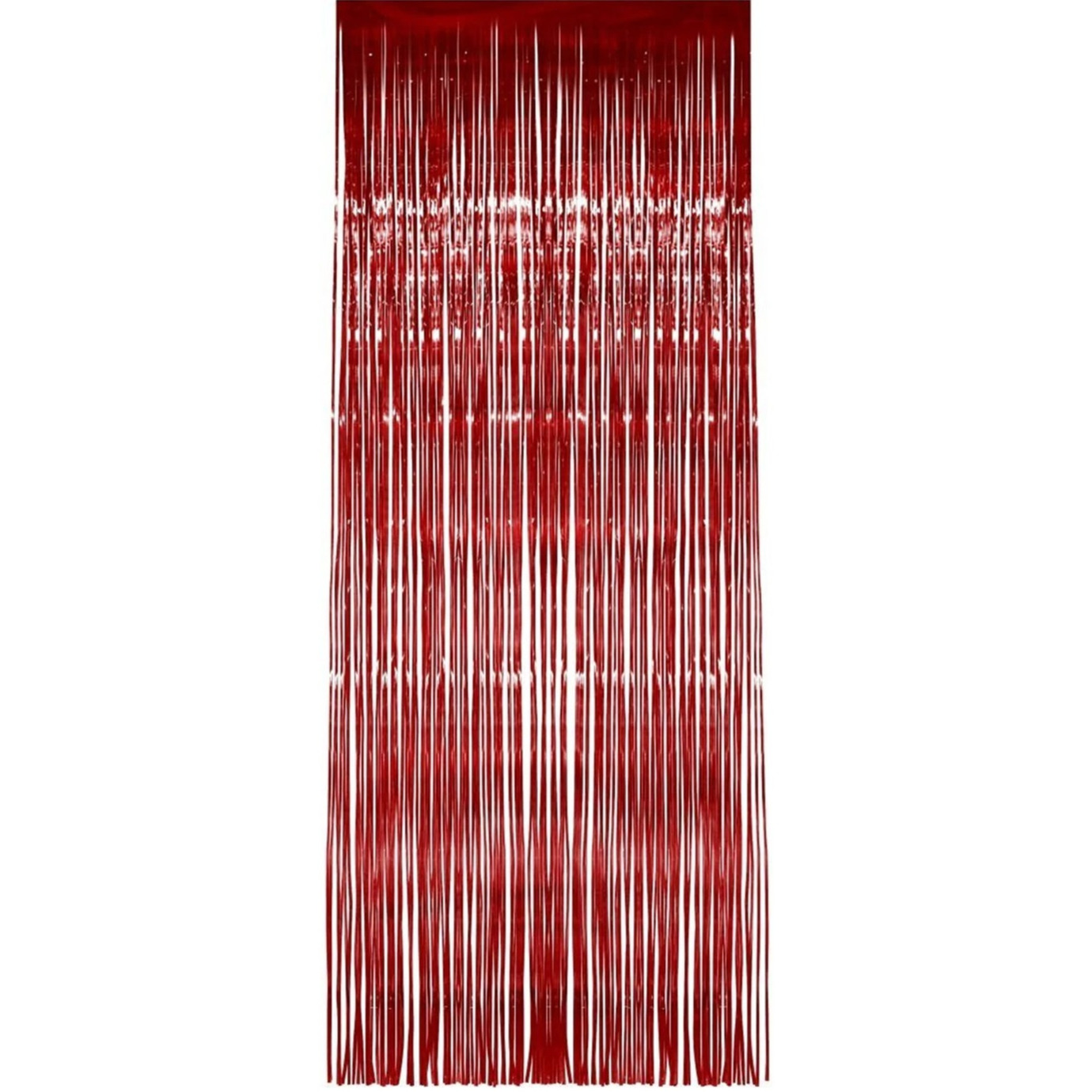 Folie decoratie deurgordijn in de kleur rood om ook de deur of wand van een feest volledig te versieren. Glinsterende folie gordijnen voor een flitsende versierde party. Het formaat van deze feestartikelen versiering is 244 x 91 cm en kan doormiddel van een plakstrip worden bevestigd. Deze versiering is niet brandvertragend. Voor een complete versiering in de kleur rood vindt u alle feestartikelen in deze winkel.