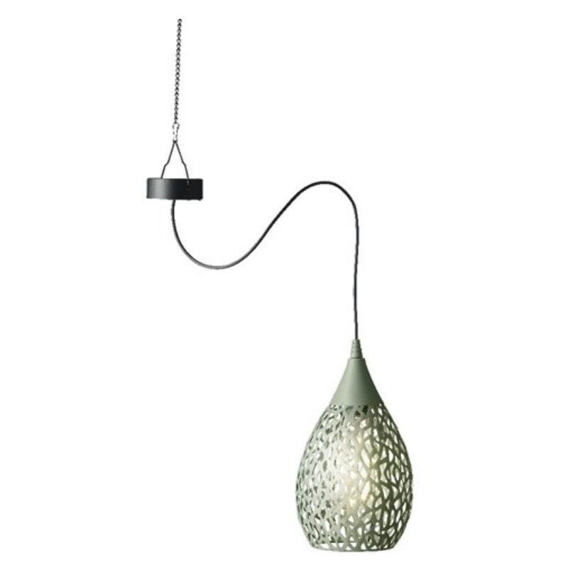 Groene solar tuinverlichting hanglamp ijzer voor in uw tuin. De verlichting werkt op zonne-energie waardoor het zichzelf oplaadt gedurende de dag. Lamp: warm wit.