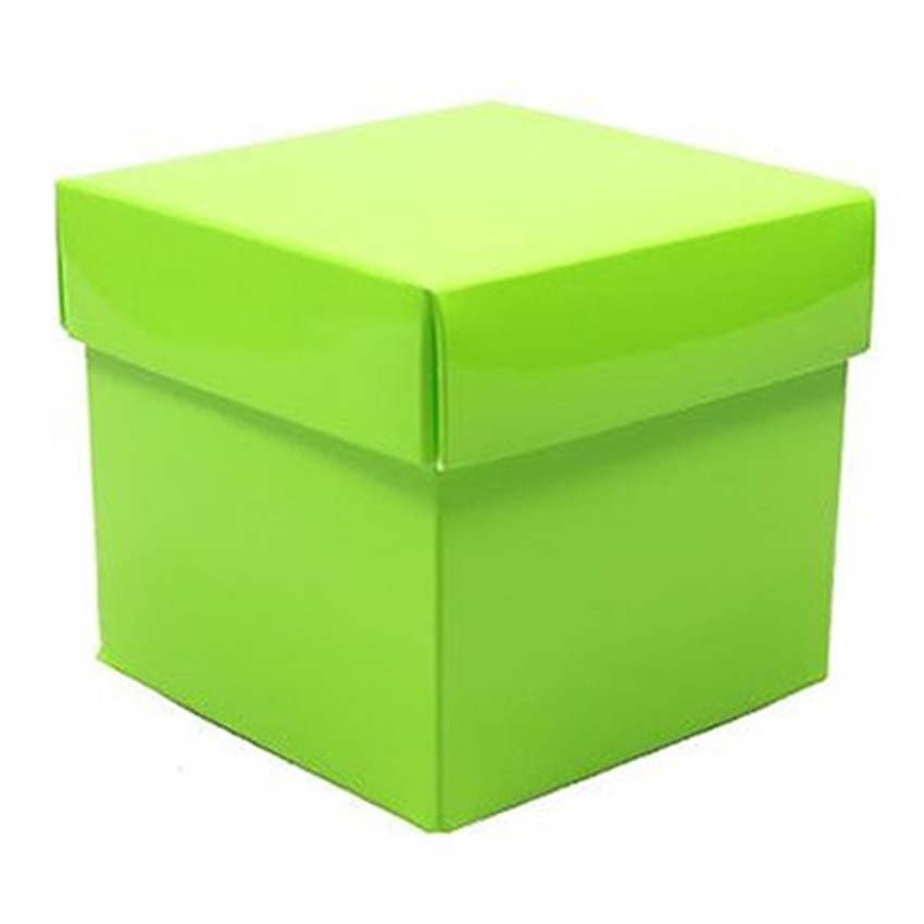 Luxe cadeaudoosje of verpakking met deksel in de kleur groen metallic. Vierkant model. Cadeauverpakking van stevig karton met glimmende coating. Kan gebruikt worden als cadeauverpakking of bijvoorbeeld ter decoratie in een etalage of onder de kerstboom. Materiaal: gelamineerd karton papier. Formaat: 10 x 10 x 10 cm.