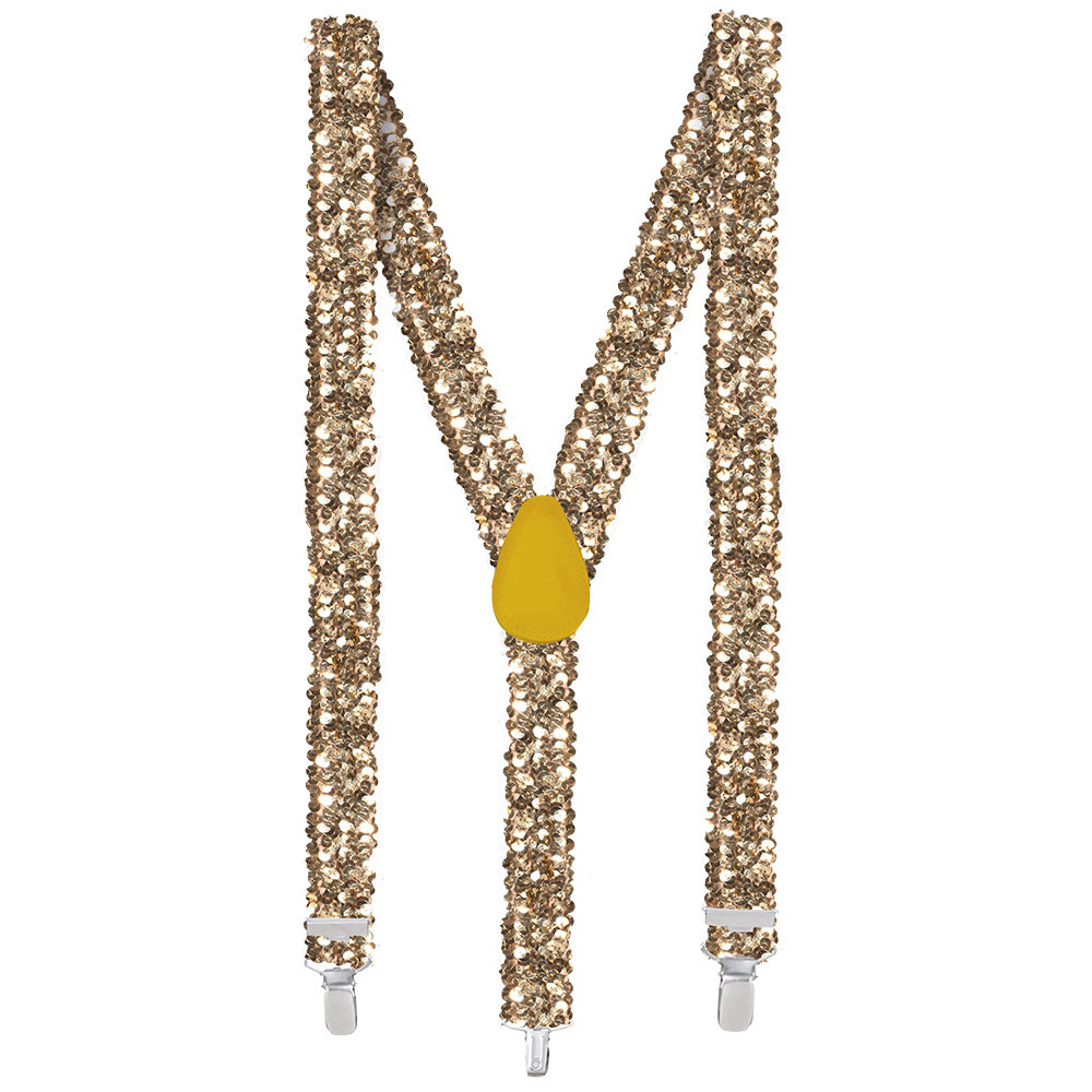 Carnaval verkleed bretels voor heren/dames/volwassenen. Kleur: glitters goud. Materiaal: 100% polyester. Carnaval/feest/party verkleedkleding accessoires. Uw verkleedoutfit wordt completer met deze bretels. One size verstelbaar model. Let op: dit is een verkleedaccessoire voor volwassenen, geen speelgoed.