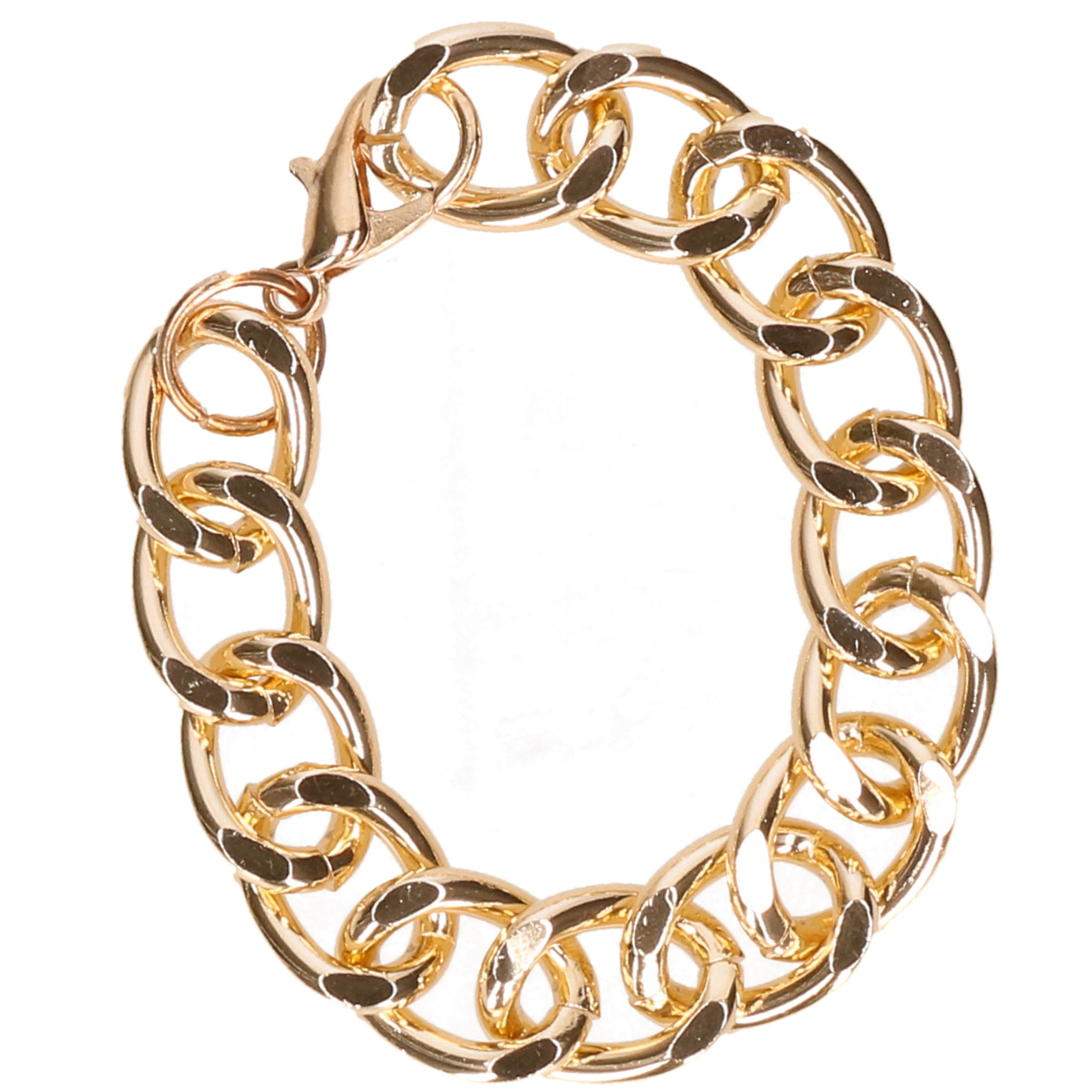 Carnaval/verkleed Pimp/Gangster thema armband in het goud. Deze armband is goud van kleur en heeft grote schakels. Deze armband past goed bij een gangster, rapper, foute party of pooier kostuum. Gemaakt van kunststof. Let op: dit is een verkleedaccessoire voor volwassenen, geen speelgoed.