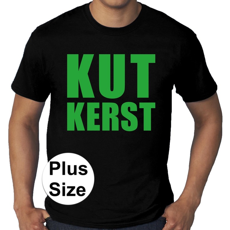 Grote maten fout kerst t-shirt KUT Kerst zwart voor heren. Dit plus size Kerst shirt is bedrukt met: KUT Kerst. Materiaal: 100% katoen, 145 grams kwaliteit. Leuk om te dragen naar bijvoorbeeld een kerstborrel.