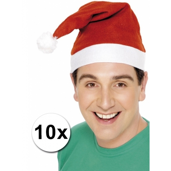Faram Party Kerstmuts – 10 stuks – rood-wit – acryl. Standaard model roodkleurige kerstmuts, leuk voor de kerstdagen. Voordelige kerstmuts gemaakt van 100% acryl.