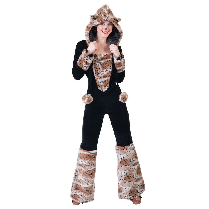 Een zwarte kat/panter verkleed carnavalspak, geschikt voor dames. Bevat jumpsuit en kap/capuchon. Materiaal: polyester/pluche. Wasvoorschrift: Enkel handwas, niet strijken.