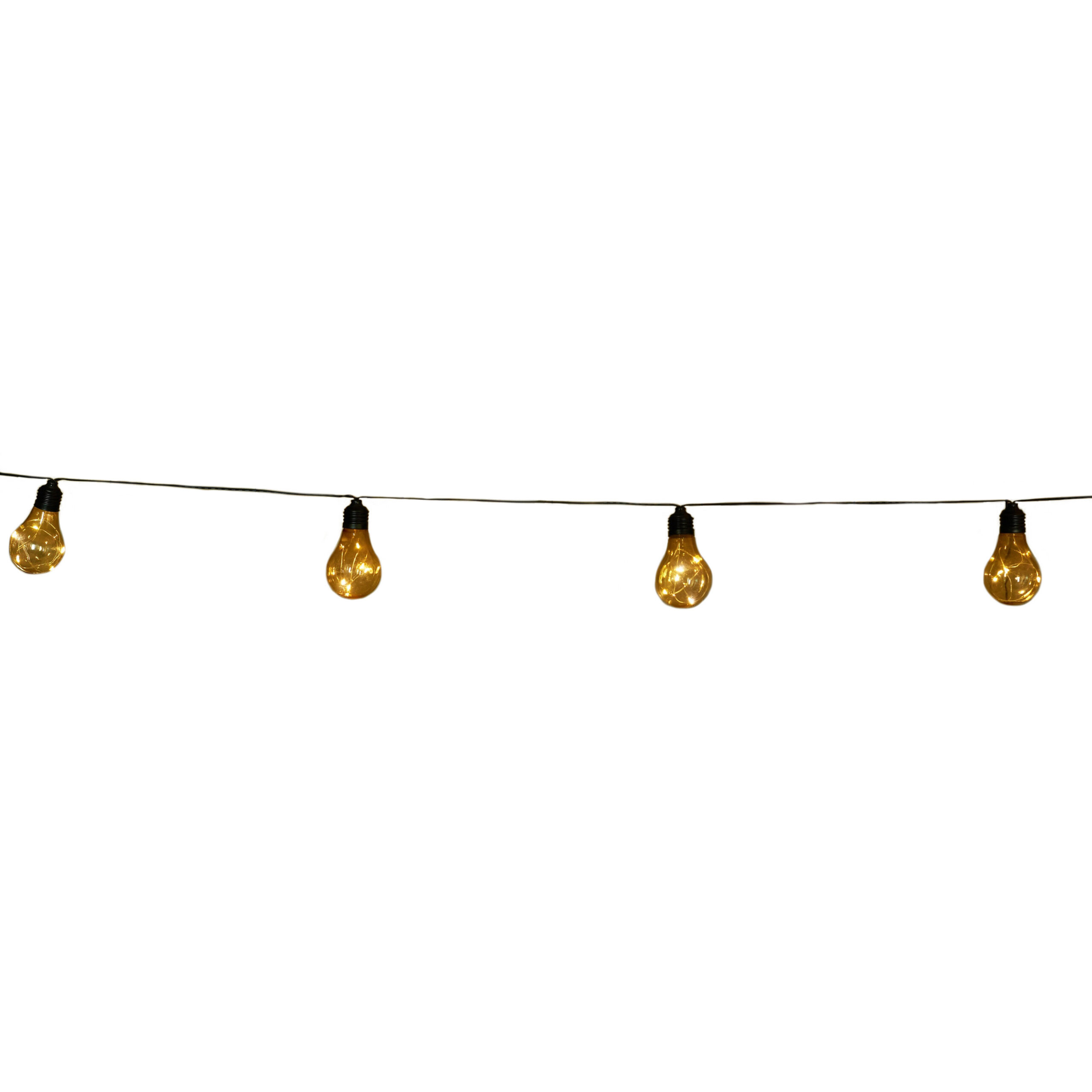 Solar tuinverlichting lichtsnoer. Breng sfeer in je tuin of op je feestlocatie met dit solar lichtsnoer van 4,5 meter. De 10 warm witte LED bollampjes zorgen voor gezellige verlichting, ideaal voor tuinfeesten, barbecues, of als permanente tuinversiering.
