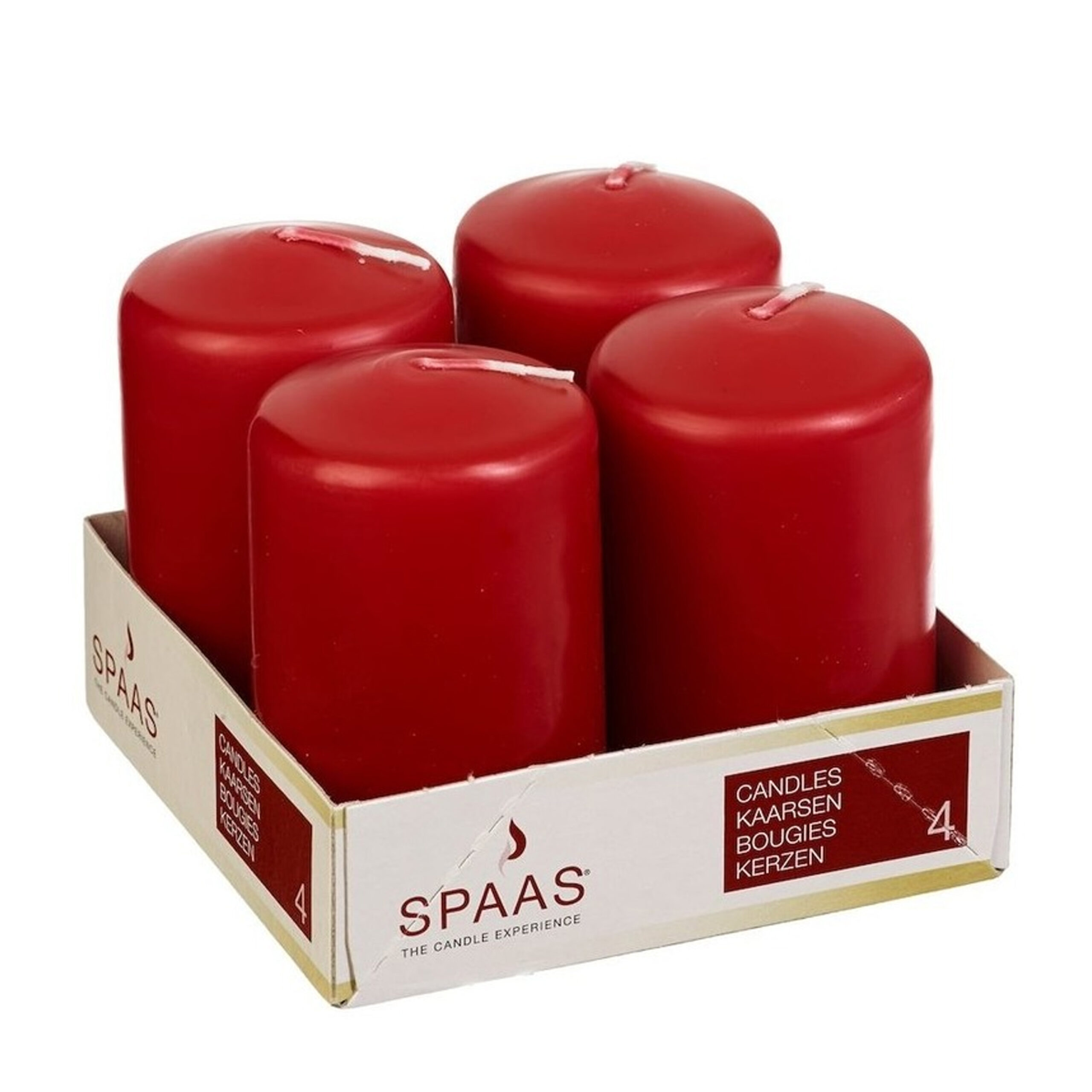 4x stuks cilinderkaars/stompkaars 5 x 8 cm rood, 12 branduren. Rechte cilinderkaarsen/stompkaarsen zonder geur met gladde afwerking in de kleur wit. U kunt meerdere kaarsen gebruiken als sfeermakers, bijvoorbeeld tezamen gepresenteerd op een kaarsenplateau. Formaat: diameter 5 cm, hoogte 8 cm. Aantal branduren: 12 uur. Materiaal: wax/was, paraffine. Geurloze sfeerkaarsen cilinder/stomp kaarsen. Woondecoraties kaarsen versiering. Brandende kaarsen geven meteen meer sfeer aan uw omgeving.